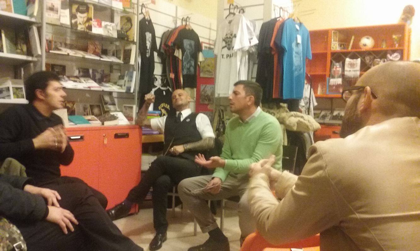 Nella città granata l’incontro è stato introdotto dall’autore della prefazione Domenico Mungo, autoctono ma ultras viola, con un intervento sulle sottoculture da parte di Oscar Giammarinaro, voce de Gli Statuto. In un sabato pomeriggio dal retrogusto meridionale, tra un clima primaverile e la quiete post-pranzo di una mangiata da trattoria barese.