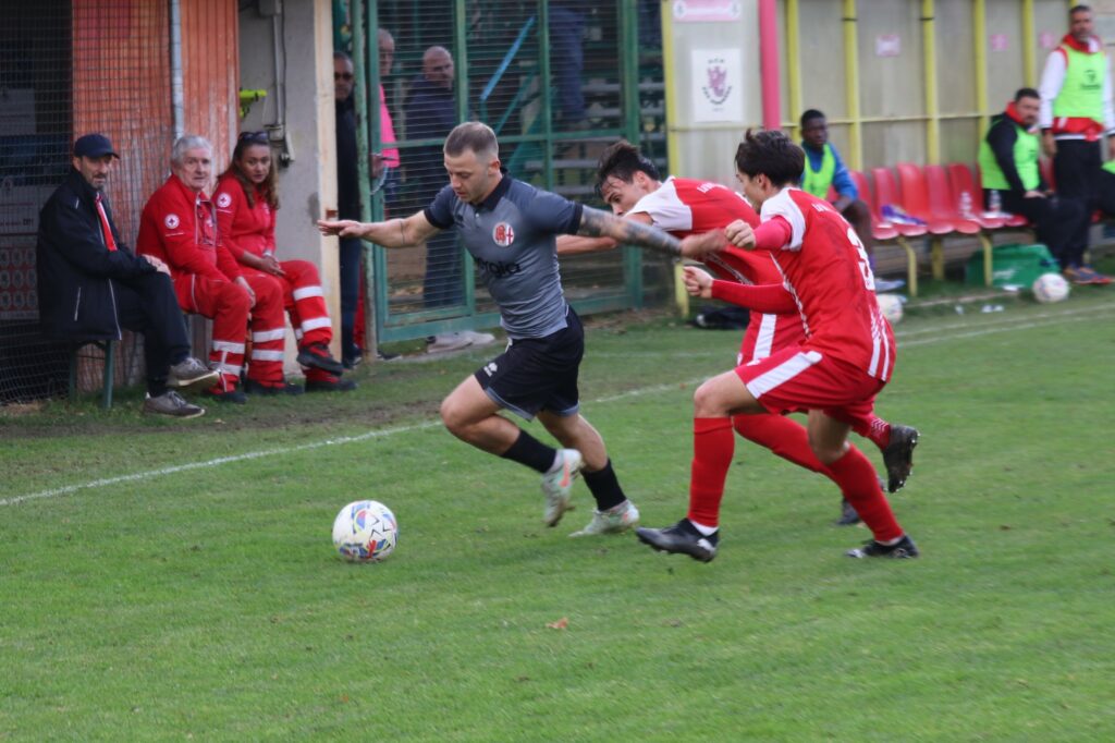 Riavvolgendo però il nastro al confronto di Dronero non possiamo che evidenziare le note positive della squadra di Alberto Merlo: concentrazione, padronanza del campo, tecnica non indifferente e due belle realizzazioni che già avevano indirizzato la partita dopo i primi 45 minuti di gioco. A segno, manco a dirlo, Modou Diop, il capocannoniere, di testa su assist di Grandoni (24’) e Lorenzo Pellegrini (37’) che, per nulla infastidito dal cartellino giallo rimediato, ha macinato chilometri e, come sempre, battagliato su ogni pallone. Ne è uscito con la maglietta a brandelli ma con la soddisfazione di essere tornato al gol dopo un anno (ultima sua rete il 3 novembre 2024 a Chieri contro il PSG con la casacca dell’ FC Alessandria). Una lunga cavalcata dalla propria metacampo per poi andare a fulminare l’estremo avversario. Un urlo liberatorio che va ben oltre il significato personale ma è l’esatta fotografia della coesione di un gruppo che, pur cambiando le pedine in corsa, rimane solido e padrone della gara.