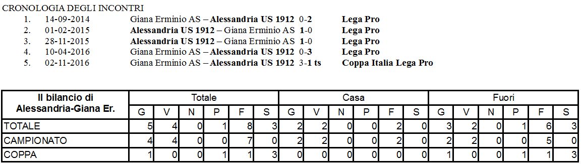 I precedenti. Il passaggio tra i professionisti impose importanti lavori di adeguamento al Comunale di Gorgonzola; pertanto la prima sfida con l’Alessandria si giocò al Brianteo di Monza. I Grigi vinsero 2-0 con doppietta di Matteo Guazzo.