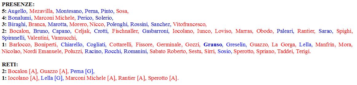 Doppi ex: c’è un calciatore che ha vestito entrambi i colori. Parliamo di ,Claudio Grauso (foto a fianco) oggi al Rivoli in Eccellenza che lo scorso anno giocò 14 gare con il Giana. Il centrocampista torinese era nei Grigi durante il campionato 1999-’00 culminato con la vittoria per 3-2 contro il Prato nella finale playoff.