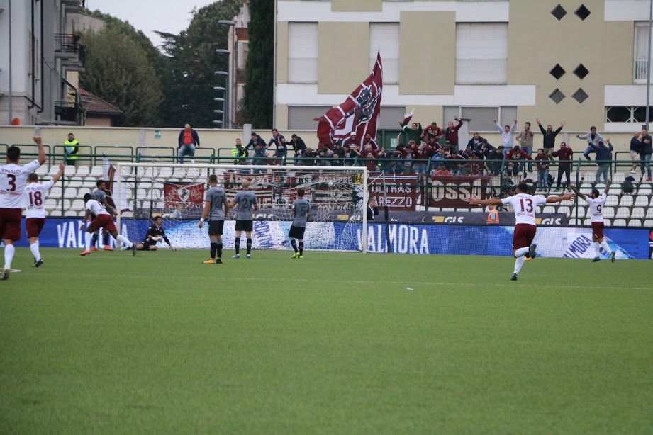 I toscani conquistano un successo pesantissimo, mentre i Grigi vengono ancora contestati a fine gara dal pubblico. L’Arezzo di Pavanel effettua una prestazione ordinata e compatta, nella ripresa una bella ripartenza, avviata da Moscardelli, viene rifinita da Yebli: palla filtrante per Di Nardo che di sinistro incrocia il tiro e firma il primo gol da professionista, poche ore dopo aver festeggiato il diciannovesimo compleanno.