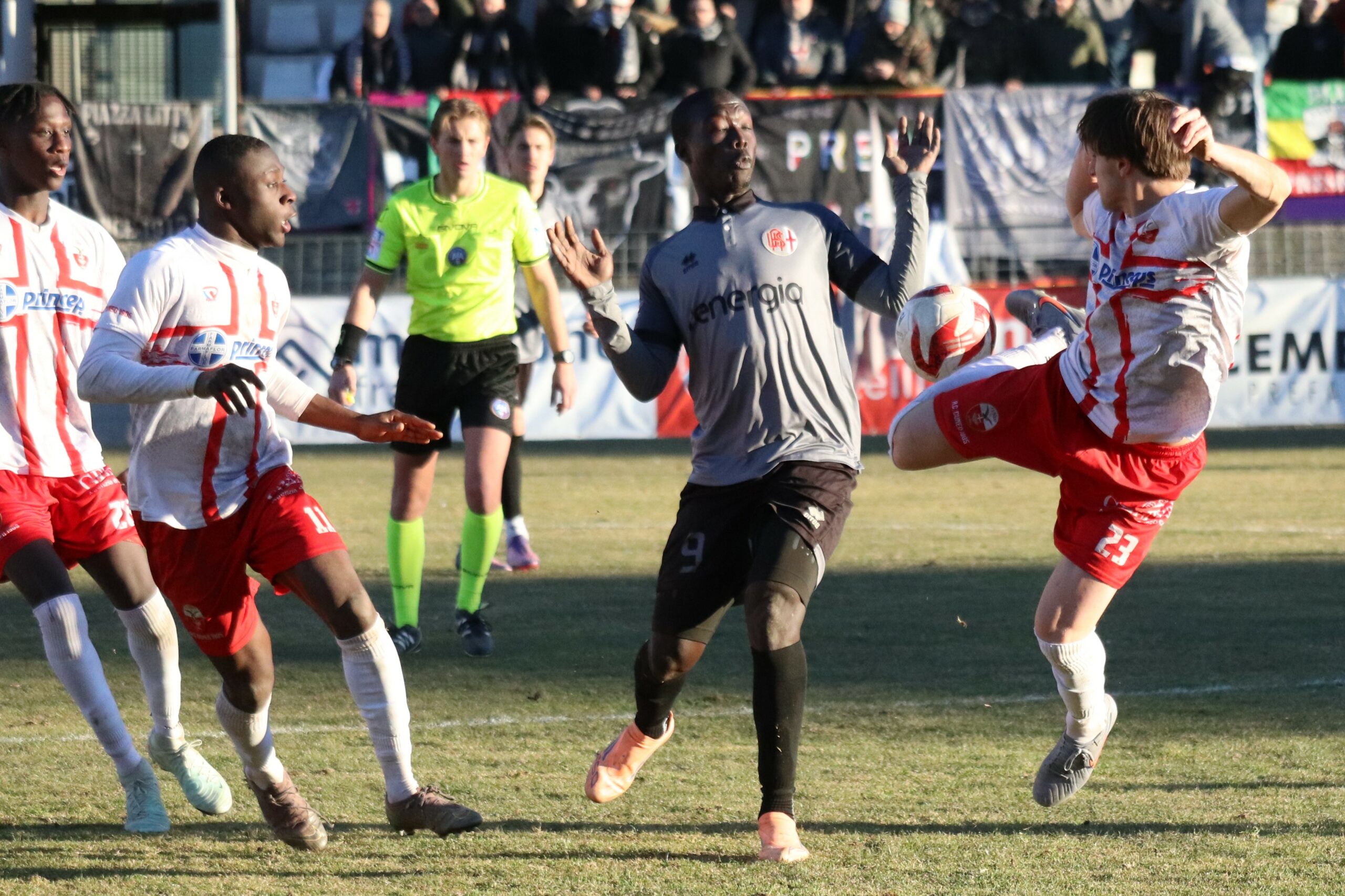 Un match non bello ma sicuramente carico di pathos, di adrenalina dentro e fuori dal campo. Da una parte il calore del popolo Grigio, dall’altra la tifoseria biancorossa che è tornata a riempire gli spalti del “Paschiero” in una stagione nella quale i rapporti con la società non sono stati certo idilliaci. Lo striscione “solo per la maglia” dice tutto.