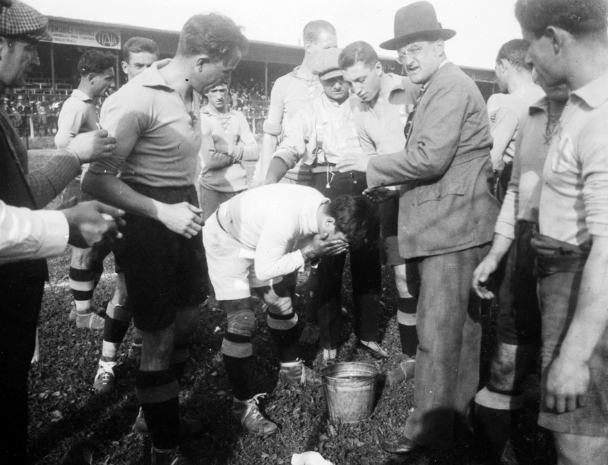 Modena-Alessandria 5-1, stagione 1923-’24. Soccorsi al portiere alessandrino contuso.