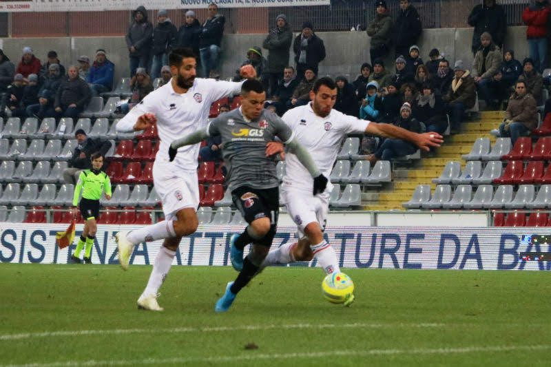 Francisco Sartore nell’ultimo derby con la Pro Vercelli, vinto dai Grigi per 2-1
