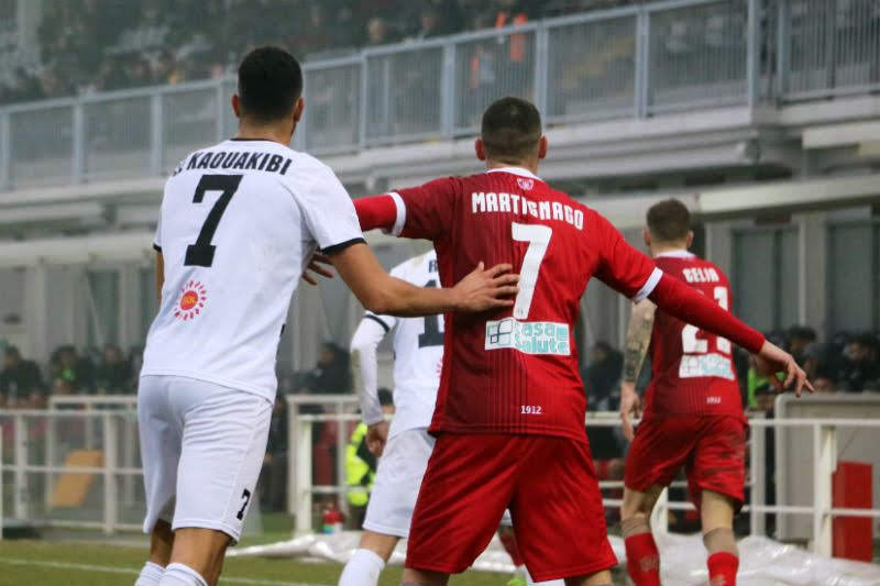 Al 63′ tiro di Latte Lath che non inquadra lo specchio della porta, seguito da un tentativo dei Grigi al 67′ con Eusepi che non crea problemi a Vitali. Al 69′ colpo di testa sottoporta di Latte Lath respinto in corner dal portiere, al 75′ fendente nel mezzo di Pedrelli smanacciato da Valentini. All’81′ tentativo di Celia bloccato a terra da Vitali, all’84′ cross basso di Latte Lath per la conclusione di prima intenzione di Pedrelli che termina di poco alta.